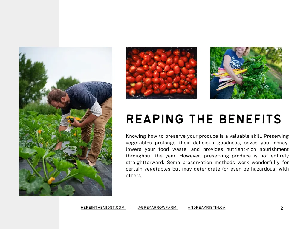 At Grey Arrow Farms, we’ve spent decades growing and preserving organic vegetables. This guide brings together our favorite methods and secrets to help you enjoy fresh, delicious produce all year round